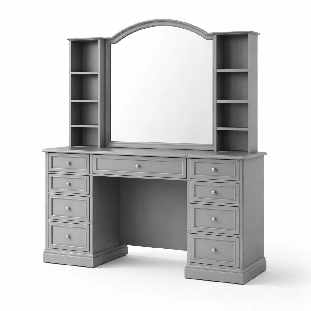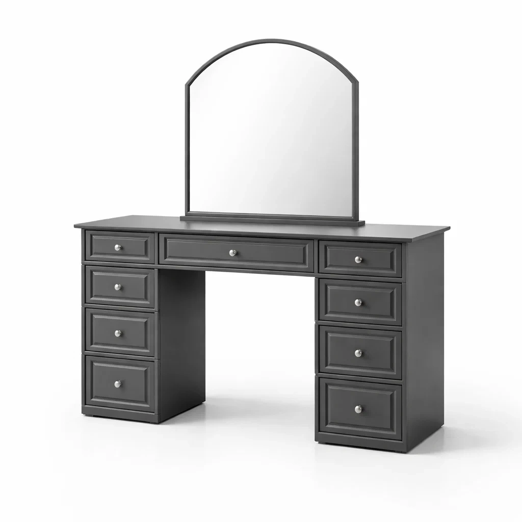 Schminktisch holz grau mit spiegel und schubladen