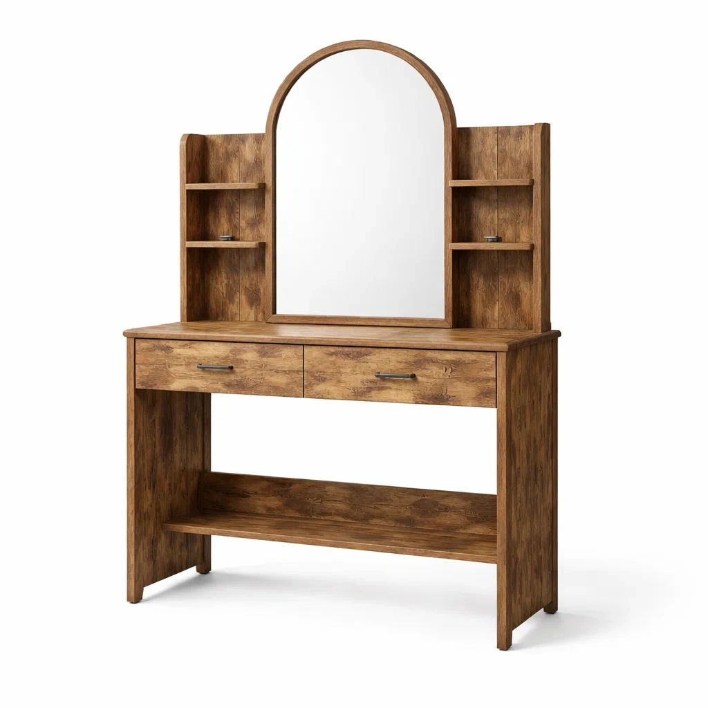 Schminktisch holz mit spiegel und regalen