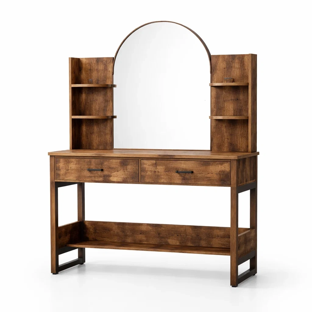 Schminktisch holz braun mit spiegel und regal