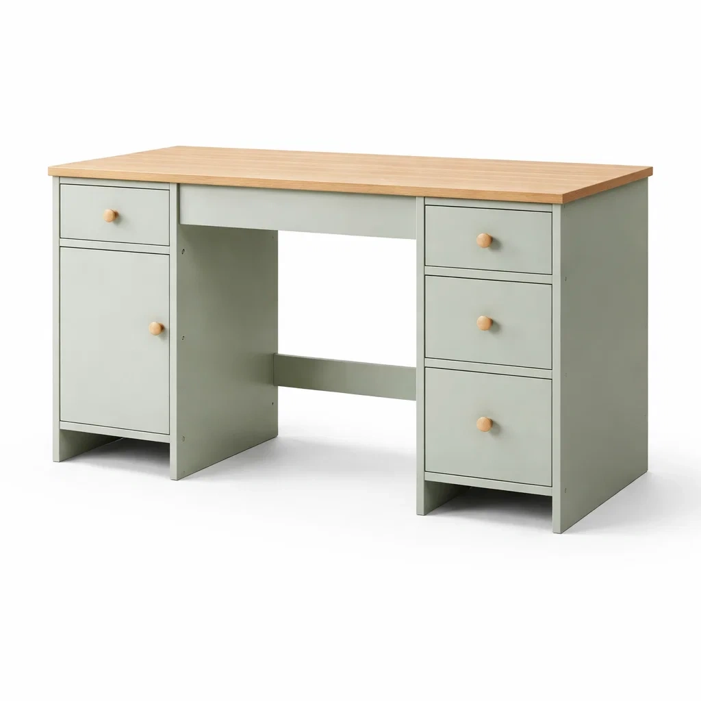 Schreibtisch mdf kiefernholz grün mit schubladen und tür 120 x 50 x 75 cm