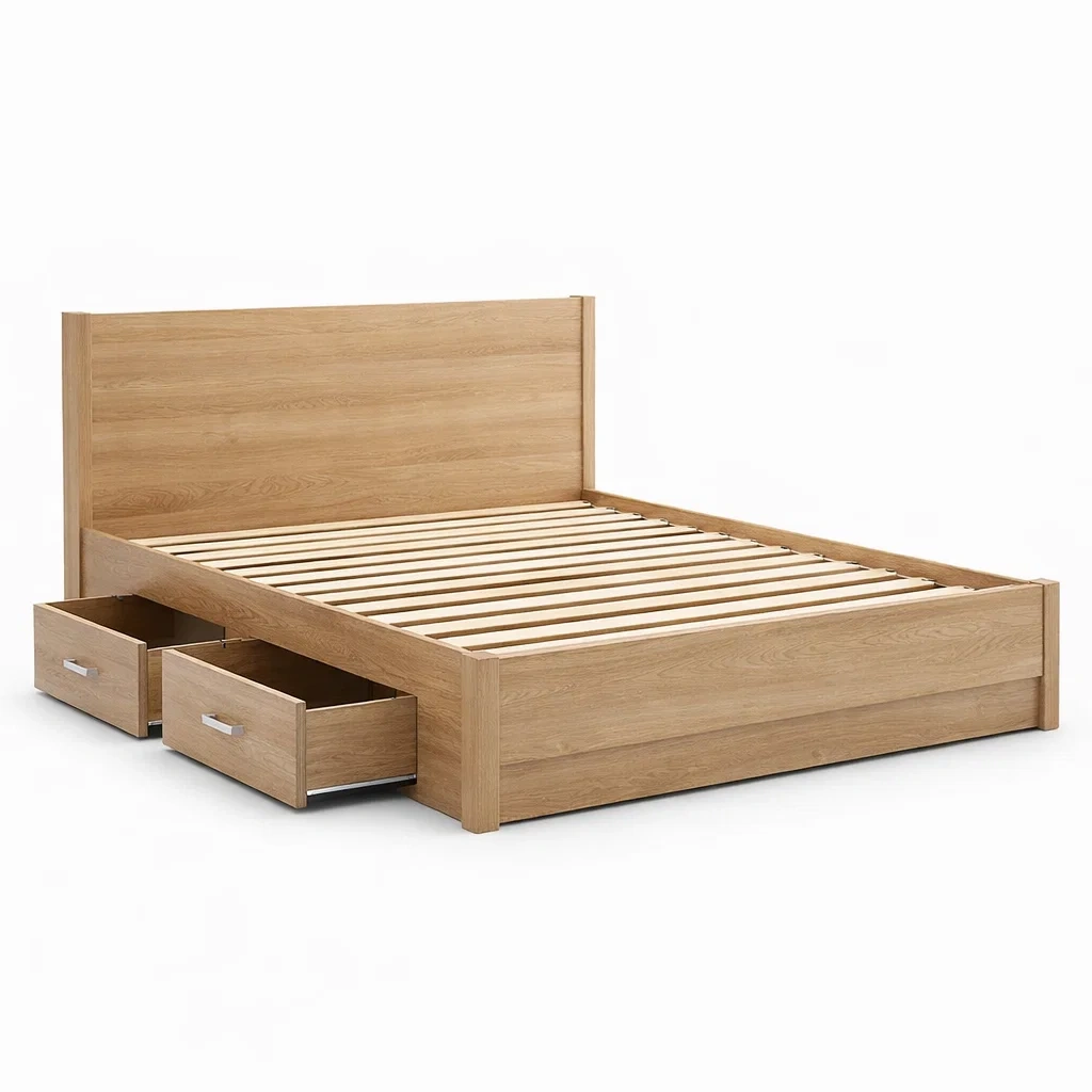 Komponenten: Kopfteil, Lattenrost, zwei Schubladen