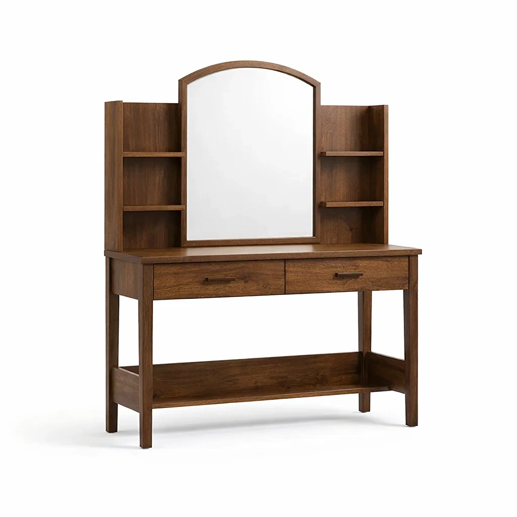 Schminktisch holz braun mit spiegel und regal