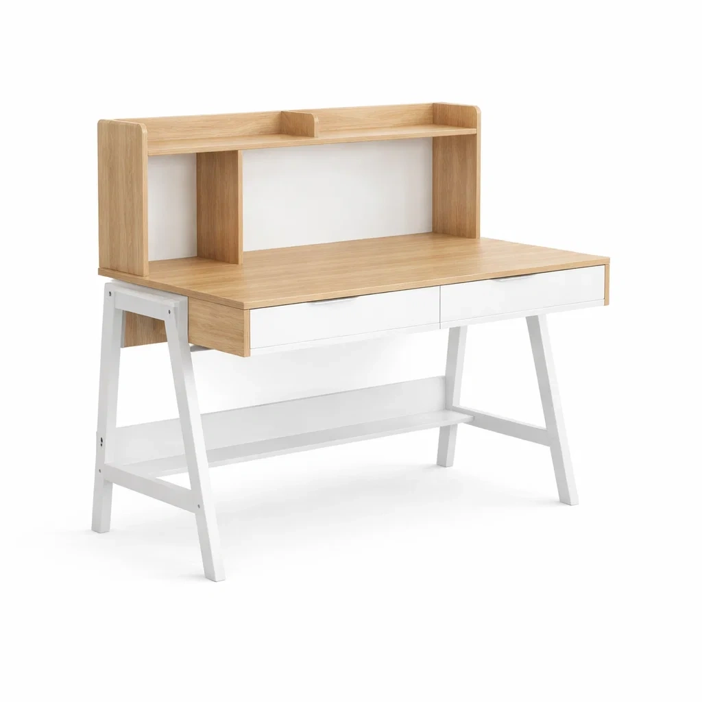Komponenten: Integriertes Regal mit Fächern, zwei Schubladen, unteres Ablagefach